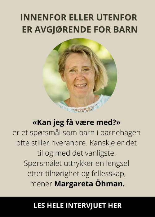 Margareta vil i kveldskurset deretter dele verktøy til å tenke over hvordan vi kan støtte leken, slik at den fungerer for hvert enkelt barn, men også for gruppen som helhet.